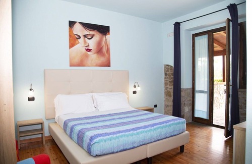 Villa Leonzio’s accommodations are as spacious and distinctive as the property itself, offering a total of nine beautifully appointed double bedrooms split between the main villa and an adjacent guesthouse. In total, the estate can comfortably host up to 23 guests, making it perfect for small groups to have the entire place to themselves. Each room has been individually designed to blend rustic Italian charm with modern luxury – think terracotta or hardwood floors, exposed stone walls, and antique touches combined with plush bedding, contemporary bathrooms, air conditioning, and Wi-Fi. Below is an overview of the bedroom layout and their unique features: