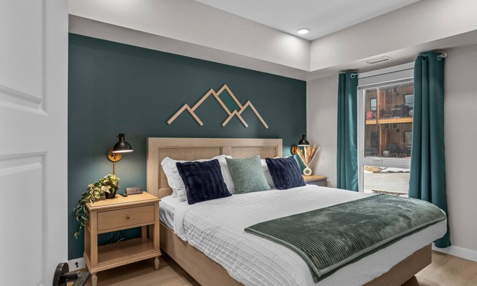 The master bedroom offers a plush king-size bed and a private ensuite bathroom, providing a touch of luxury and privacy. The second bedroom also includes a king-size bed, while the second bathroom, conveniently located off the main living area, features a full bathtub—ideal for soaking after a day of outdoor adventures. Step outside to the private patio, where you can savor peek-a-boo mountain views, grill on the BBQ, or simply unwind while overlooking the serene courtyard.