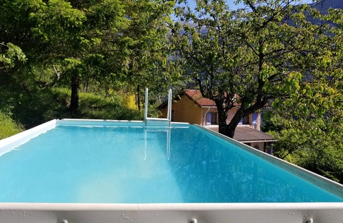 In a quiet setting surrounded by nature (green area), facing the peaks of the Mercantour park, ground stone house floor located in the valley of Vésubie: bedroom, bathroom, kitchen-dining room (35m2) . Outside: barbecue area overlooking the valley, swimming pool with breathtaking, unobstructed view, terrace, parking. With every comfort: TV, sofa, fully equipped kitchen. Wired internet and wi-fi. Room equipped with new bedding and comfortable bathroom with shower.