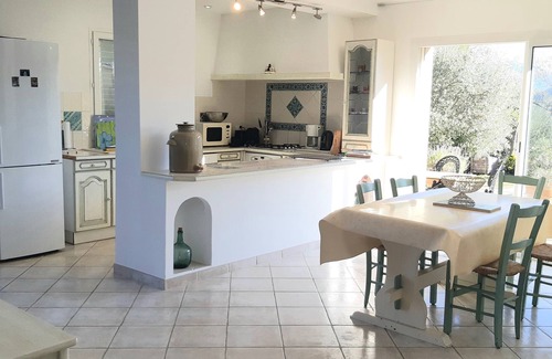 Outside you will find, looking out over the Gulf of Ajaccio, a large shaded arbor and its wrought iron garden furniture that can accommodate 4 people, to the EAST a second granite table faces the mountain. For your grills a WEBER charcoal BARBECUE is provided. Parasols are provided for the beach,.