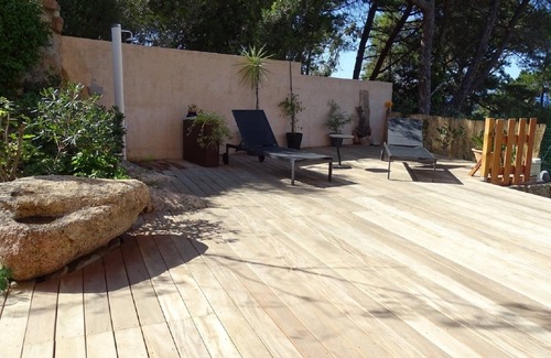150 m from the beach of Mare Sole (sandy beach) and the magnificent silver beach 400 m, in private property of 2000 m2, RDJ F3 of 70 m2