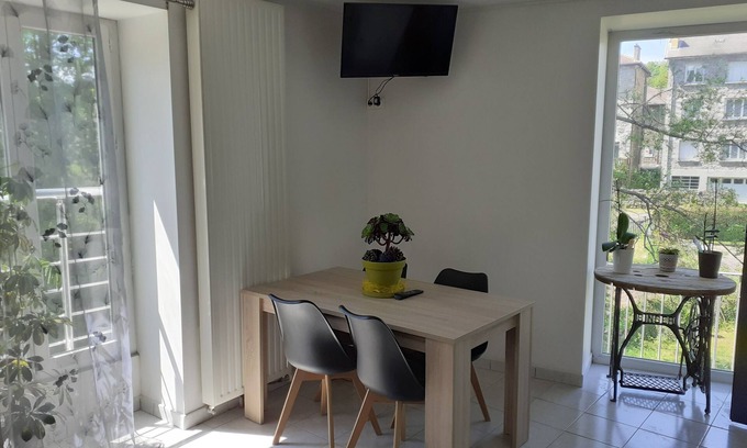 Ground floor studio for 2 to 4 people in the center of Tence is located in Tence. Ground floor studio for 2 to 4 people in the center of Tence provides accommodation, featuring TV, Wellness Facilities, Kitchen, among other amenities. This Apartment features TV, Wellness Facilities, Kitchen, to make your stay a comfortable one.