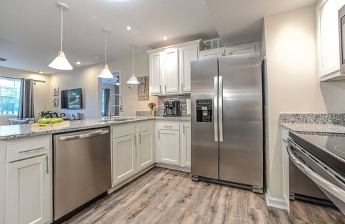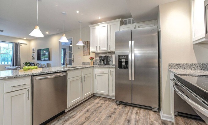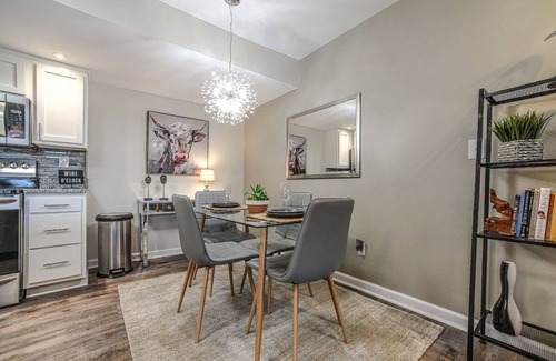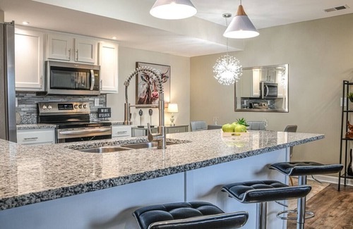 This super adorable and stylish new flat is nestled on the ground floor of a duplex in the community of Zoneton. You'll have convenience of being only 17 minutes from Downtown Louisville, while enjoying a peaceful country style suburb setting. The great room boasts a fully accessorized kitchen, pull out queen sofa with memory foam & a 50" smart TV. The bedroom has a queen bed and smart TV. Included are a washer/dryer & walk-in closet. There is fiber optic WIFI & Netflix.