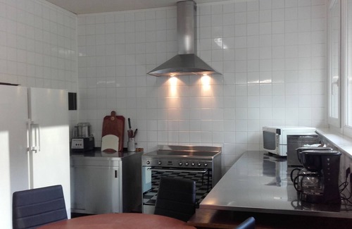 Dining room / living room of 100 m2, a veranda, a semi professional kitchen, with a piano induction / large oven, 2 refrigerators, microwave, 1 laundry with washing machine and dryer. Small additional lounge and veranda with foosball darts. Benches, tables, barbecue and deckchairs, ping-pong table outside except winter. Bowling alley.