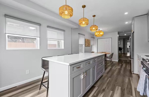 This historical Victorian style recently fully remodeled house has ample space for your whole group. Our living space of 2,000 sqft has 4 bedrooms/4.5 Baths, a large back patio, and a 2 car driveway. Each bedroom has its own full bathroom making it convenient for everyone staying.