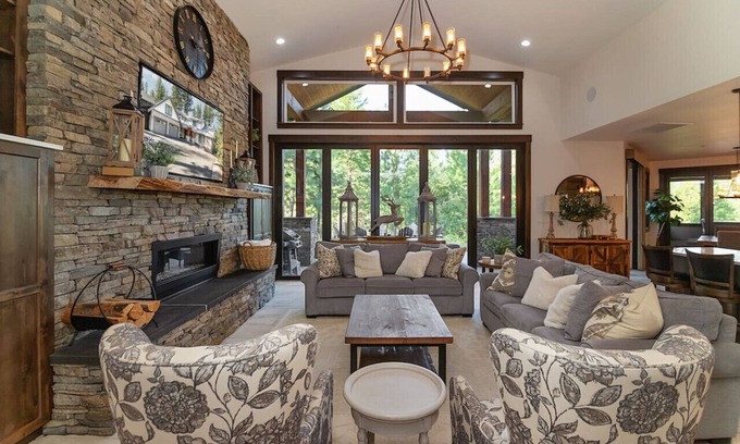 This luxurious retreat offers a secluded oasis with breathtaking forest and ridge views. Perfect for large groups with a gourmet kitchen with two islands, a comfortable living room with large-screen TV and plush seating, three ensuite bedrooms and a bunk room. For fresh air, choose from the large hot tub, s'mores by the firepit, or the screened in dining space. Close to golf, fine dining, Swiftwater Winery, and Suncadia’s spa, it’s the ultimate destination for relaxation and indulgence.