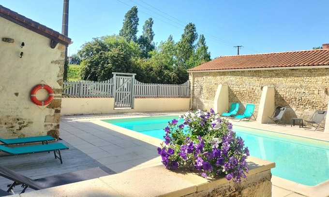 Group gîte for 20 people in a quiet location is located in Saint-Jean-de-Beugne. Group gîte for 20 people in a quiet location provides accommodation, featuring Kitchen, Parking, Pool, among other amenities. This House features Kitchen, Parking, Pool, to make your stay a comfortable one.