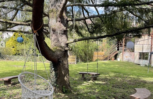 Cottage near the river located in the Risle valley, 2km from the town of Rugles. At the heart of a historic estate which included forges, the place retains its authenticity. Rooms and studios grouped together in the same house, large fitted kitchen, lounge and dining area with fireplace and large table, outdoor garden with table, barbecue and jacuzzi as well as a partially isolated room dedicated to party.