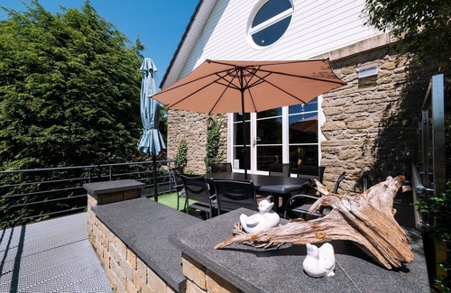 Relax and unwind at this 8-bedroom cottage in Möderscheid with your extended family and friends, a total of 26 people. The cottage has an infrared sauna and a Turkish steam bath for an unforgettable experience.