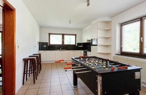 Located in the scenic village of Maboge near La Roche-en-Ardenne, this spacious holiday home is perfect for large groups or family reunions. Just 4 km from the town center, guests can explore the medieval Château Féodal, kayak on the Ourthe River, or relax at Maboge Beach, a natural swimming spot surrounded by forest. The Battle of the Ardennes Museum and Barrage de Nisramont offer rich history and outdoor adventure.