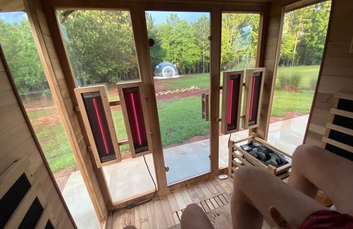 Enjoy cozy domes, forest trails, hot tub, sauna, pool (seasonal), and a stargazing event dome. Sleeps up to 15.