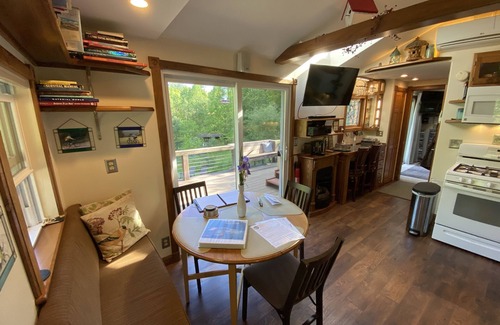 Our cottage is set back about a quarter mile from the road (all back roads here so minimal traffic noise), in nestled next to the pond in the middle of the woods. Our pet friendly solar powered vacation cottage is a perfect getaway for anyone trying to spend some alone time with nature!