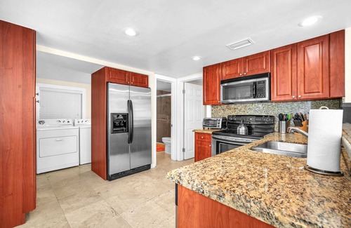 Experience a slice of paradise in the heart of Coconut Grove! This charming 2-bedroom, 1-bathroom Key West-style cottage is fully gated and includes parking. Enjoy thoughtfully upgraded interiors featuring marble floors, granite kitchen counters, and a modern bathroom. Stay comfortable with central AC, cable, and WiFi. Walk to tennis courts, the bay, Coconut Grove Village, shops, restaurants, clubs, and parks—immerse yourself in the best of Miami right outside your door!