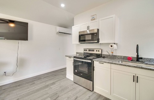This 2-bedroom, 1-bathroom rental features a BBQ grill and air conditioning. Prepare a home-cooked meal in the kitchen, complete with an oven and a stovetop, as well as a microwave, cookware, and paper towels. Other amenities include bed sheets, an ironing board, and heating.
