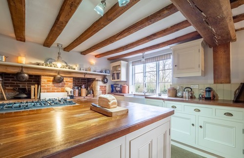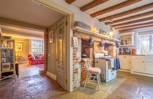 This wonderful farmhouse is perfect for a larger group wanting to get together in luxurious surroundings. The house provides lots of space with a number of different sitting rooms and a large kitchen/dining space so you can all find you own space to relax in. With plenty of beautiful features, including the exposed beams and inglenook fireplaces, along with lots of updates, your stay is sure to be very comfortable. The large open-plan kitchen and dining space has a Rayburn which gives it a very cosy feel, while the sitting rooms each have their own wood burning stove. Upstairs, the five large bedrooms are stylishly furnished and the bathrooms provide restful sanctuary when you want to relax and take some time for yourself.