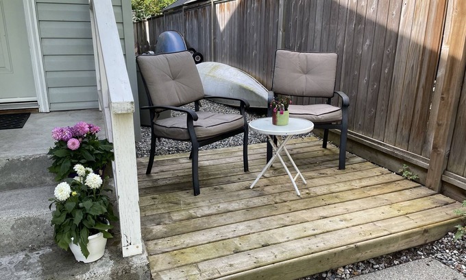 Welcome to our Grove Getaway. Located in quiet Beach Grove. Private entrance suite with full kitchen, full bathroom and bedroom. Whatever brings you to Tsawwassen, we can accommodate. Beach days, mall shopping or transitioning to the island. Beach access 1 block away, café around the corner, ferry terminal is a 10 minute drive away.