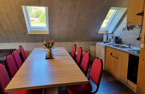 The group accommodation consists of several holiday flats under one roof. Our guests are always unanimously enthusiastic about the fact that the group accommodation has several separate living rooms in addition to the recreation room.