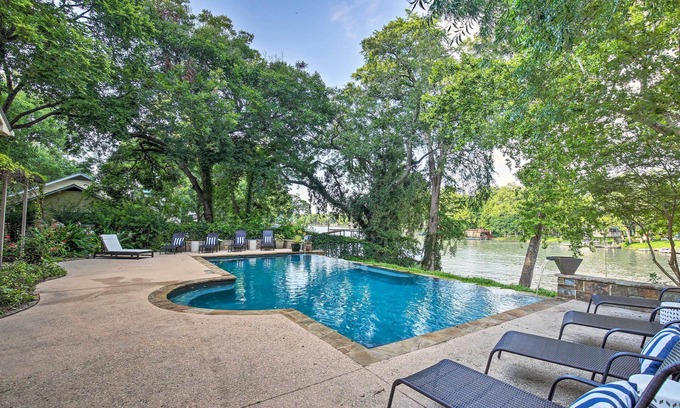 Look forward to splashing in the pool, fishing off the dock, or reclining on the deck overlooking the Guadalupe River, all when you stay at this gorgeous 4-bedroom + boathouse, 4-bathroom vacation rental. While you're here, tube down the Comal River, ride water slides at Schlitterbahn, or stay home to enjoy the house's outdoor entertainment space. The kids will love making s'mores around the fire pit, while adults can soak in the private hot tub!