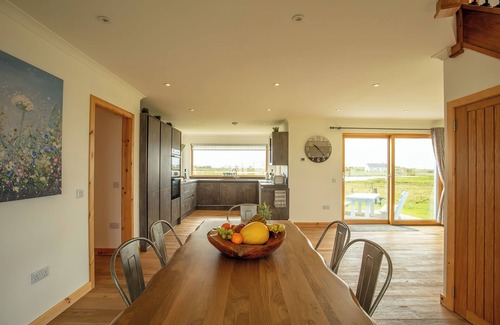 Amenities: Underfloor heating downstairs and radiators upstairs. Electric oven, electric hob, microwave, fridge/freezer, washing machine, tumble dryer, dishwasher, coffee maker, hairdryer. Smart TV, WiFi. Fuel and power inc. in rent. Bed linen and towels inc. in rent. Highchair and travel cot available on request. Ample off-road parking. Gardens to three sides, patio, gravelled area, furniture. Pet-friendly. Sorry, no smoking. Shop 2.2 miles, pub 3.5 miles. Note: Though electricity is included in the rent, electric for charging cars is not included in the rental. Note: Please bring own linen for travel cot. Travel advisory: