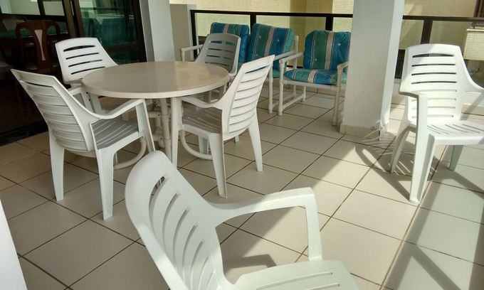 BEAUTIFUL APARTMENT !!! - 02 blocks from the beach, barbecue and pool, approximately 200/250 meters from the beach. - close to bakeries, Extra and Dia market, Meat shop and other shops. -near the Estrada de Pernambuco with access to the beaches of Pernambuco, Perequê, Bertioga, etc. - 7 min from Shopping Jequiti - Praia Pernambuco - Mercado Pão de Açucar. 2-The apt is located approximately 500m. the Peninsula / Tortuga, a place with panoramic views of the Atlantic Ocean and nearby islands; great walk / hike. - During the season, the condominium has 24 hour security and beach service (takes umbrella and beach chairs back and forth). Wide fit, well ventilated, during the day as well as at night; 2 after and. -Spacious pantry / kitchen w / fridge, freezer, microwave, built-in stove w / 6 burners / oven, electric oven, juicer blender, glasses, plates, pots, cupboards and table for 5 places. -Service area w / tank, clothesline, washing machine. -Dining room with travertine marble table for 8 seats. -Living room w / L-shaped leather sofa for 6/8 people and 1 chair; coffee table, card table w / 4 chairs; ceiling fan. -TV room, w / two sofas with 2/3 seats each, 1 rocking chair, TV 29 ", ceiling fan, - Bar w / 4 stools. -Laundry. -Spacious terrace with access to the master suite, with external view, with table for 5/6 chairs, 2-seater sofa and 2 armchairs. -Dorm rooms all with balcony, ceiling fan, closet. -Main suite, and two bedrooms with double bed. -Suite suite w / 1 trellis- 1 bunk bed + 1 mattress - WCs master suite - The apartment accommodates up to 12 people including adults and children.