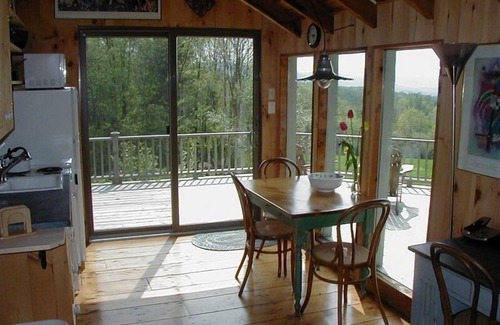 A one-room Vermont mountain Cabin one mile to picturesque Belmont Village and Star Lake, and 6 miles to Okemo Resort and Ludlow. Enjoy this guest cabin on a knoll above our home, with a deck overlooking Star Lake, meadows, mountain vistas and spectacular sunsets. Sleeps 1 or 2 guests (Queen); completely renovated with new, modern kitchenette and bath. A beautiful mountain get-away, yet close to activities.