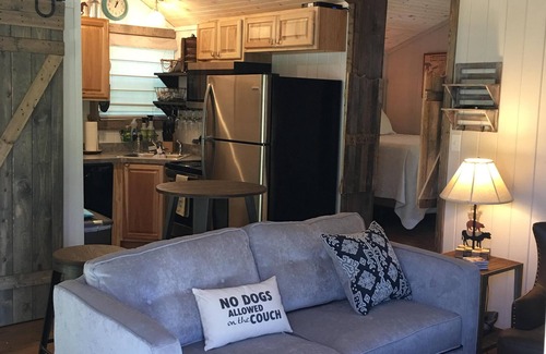 Dogs 75lbs and under are welcome to stay in the cottage with their human per dog rules. Dog fees apply. Dogs over 75lbs or families with more than 1 dog must be pre approved before booking. Please note dog fees. Dogs must be crated to be left alone in the cottage. Reservations can be made with our nearby kennel for boarding or day-camp. Human aggressive or dog aggressive dogs are not a good fit for this property.