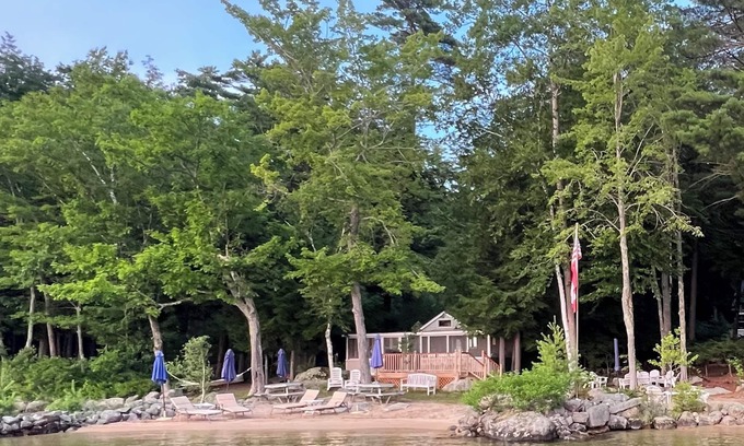 This Guest Cottage on an Estate Property sits on 330 ft and over 3 acres of privately owned sandy beachfront on the renowned ”Gold Coast of Sebago Lake”, which prides itself for the rocky coastline-like shore fronts combined with gorgeous, clean, sandy beaches and crystal clear, aqua like, warm waters. “Beachside on Sebago” is perfect for boating, swimming, relaxing, fishing from the hammock, siting eagles, and sharing the tranquil sounds of lakefront nature together. Included in “Beachside” are 2 kayaks, 2 paddle boards, multiple water float loungers, and a canoe. Truely a quintessential, magical, most enchanting, private property on Sebago Lake. Only 2 miles to Rt 302 “Main St” Windham” and 25 minutes to Portland. This classic cottage features 2 queen beds and 1 bunk bed, and a futon, perfect for a small group of guests. Spectacular sunsets, extensive docks, moorings, float, diving board, three jetties, four sandy beaches, golf cart, fire pit area, buffer lot, complete this classic one- of -a-kind sprawling watefront property.