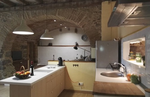 El apartamento se encuentra en la planta baja de un pajar anexo a la Masia Catalana del S. XVII.