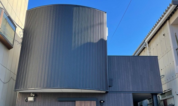 A stylish detached house from the outside with dark wood grain and black outer walls There is a parking lot in front of the building In addition the main road to Numazu Port is in front of the building but since it is built a little further back it is a quiet and calm space when you go inside