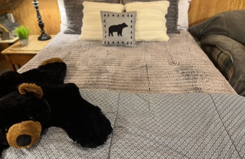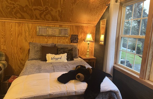 We strive for you to Enjoy a wonderful night of rest in our fun, guest house attic space. This fun and quiet guest house is our detached garage space transformed into a man cave 2 level guest house. All rented space included in Downstairs is kitchen, den and a bathroom. Up the steps is the sleeping quarters which is very cozy and quiet along with another bathroom. The sleeping area is complete with blackout curtains and a coffee bar. The bedroom resembles a long cabin room with sleeping space for up to 7 people. Includes 1 queen, 1 full, extremely comfortable pillow top mattress beds, 2 built-in-the walls regular size twin beds and a sofa for that side sleeper that might be joining in on the fun. It’s like having a sleepover in the attic to tell fun stories, play a game I-spy as you settle down, read a good book, laugh with the guys, or just bring the kiddos for a fun sleepover in a fun cabin style, black bear & duck themed attic thats very spacious. Complete with extremely soft bedding for a cozy slumber and sweet dreams. If you’re looking a very clean cabin bedroom to lay your head or hang out just a 2 minute walk to the Core Sound and Davis ferry or a 1 minute drive to a ferry to take you away for the day, then this is the perfect space for you and friends to hang out. Another sweet thing you’ll love about staying with us are the warm chocolate chip cookies for a bedtime snack. Relax anytime on the porch rockers or deck and savor the never ending ocean breeze that always flows in back yard covered deck and salty fresh air, covered with shades of oak trees.
