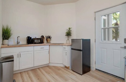 Our fully-equipped guesthouse offers all the modern amenities you need for a comfortable stay, including a fully equipped kitchen, free Wi-Fi, and a cozy living room with a flat-screen TV. The bedroom is furnished with a comfortable queen-sized bed, crisp linens, and fluffy pillows to ensure a restful night's sleep. The private bathroom is stocked with fresh towels, complimentary toiletries, and a hairdryer.