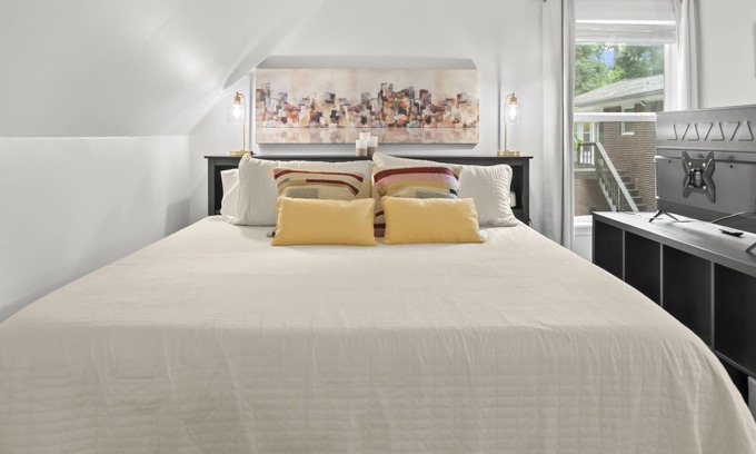 * Spacious Studio Layout - This is a detached garage studio apartment tucked into a back yard in a quiet Austell neighborhood. It is thoughtfully designed and furnished with a comfortable king-sized bed, well-equipped kitchen, and bonus garage space.