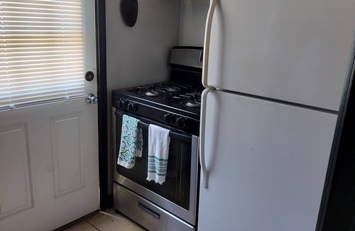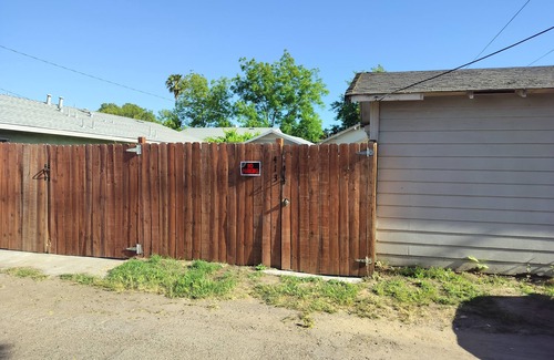 Remodeled studio guest house with full kitchen (stove and refrigerator) and spacious Bathroom with stand up shower. Large yard with patio furniture. Also has gated parking and private alley access. Accommodations include Beautiful new Queen bed and love seat, blow up twin mattresses upon request. 420 friendly, smoking outside only.