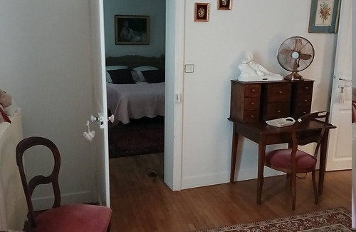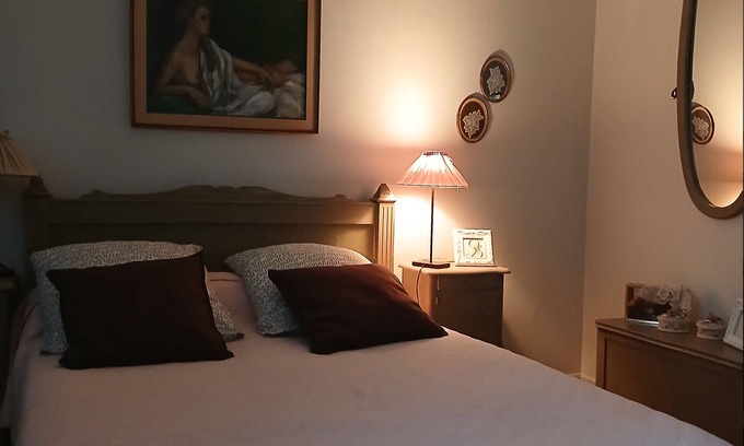 House from the late 19th century with a garden, located in Saint-Aignan, just a 5-minute walk from restaurants and bistros. You can enjoy walks in the city center, visit the castle (120 m from the castle alley), reach the collegiate church in 8 minutes, the island beach in 10 minutes via the footbridge, the banks of the Cher, children’s playgrounds, and a cinema nearby. The famous zoo is also close (south entrance at 2.5 km, other entrances at 3 km). The Myosotis room can be combined with the Althéa room to form a suite, ideal for families or groups. Breakfast is served from 8:00 to 9:30 am. A refrigerator, kettle, and microwave are available in the common room.