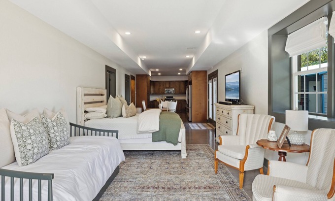 Welcome to the Guest Suite at Spruce Hill! Our guest suite is well-equipped for a relaxing stay in beautiful East Tennessee. Conveniently located just 5 minutes from McGhee Tyson Airport and only 10 min from Maryville, 15 min from West Knoxville, and 20 min from Downtown Knoxville. You'll find a stylish space with a private entrance, fast wifi, a full kitchen, cozy queen bed and a twin trundle bed, and a luxury bathroom with a soaking clawfoot tub and waterfall shower with 2 shower towers. The guest suite is located in the basement of our home, however, there is a private driveway and entrance, and you will have complete privacy during your whole stay. The interior is brand new as it was completed in 2024. Since we live on the upper 2 floors, you may occasionally hear footsteps and voices from one of our little boys running around. We will do our best to keep them quiet so they don’t disturb your stay.