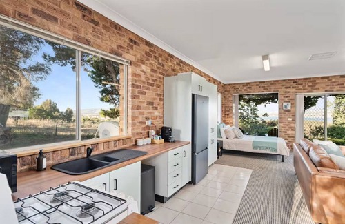 This fully self-contained double brick unit offers a bedroom with two bunk beds and a queen bed in the main studio living room. All linen and toiletries provided. The kitchen has a full fridge, microwave, oven, nespresso machine, air fryer, kettle, toaster, as well as plates, cups and cutlery.
