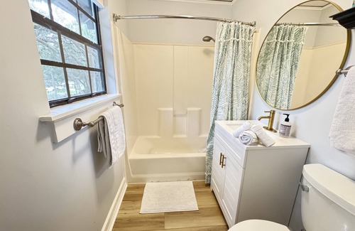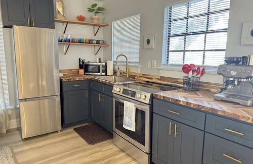 Indulge in the comfort of our guest house, where a king-size bed, full bath, and a cozy pull out (queen size) couch await you. 🛌🛁🛋️ Every amenity has been thoughtfully curated to create a home away from home ambiance. Bike or golf cart ($50/day add on rental) to the nearby ocean in just minutes, savor the coastal breeze, and let the rhythmic waves serenade you – you can even hear the ocean from the yard! 🚴♂️🌊✨ In addition, enjoy soaking in the hot tub surrounded by nature.