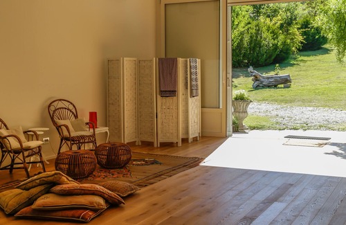 Ospedaletto 57 is a unique dwell surrounded by a spectacular garden with swimming pool in the hills of Romagna. Once a barn, it has been remodeled into a modern idea of residential space, open and full of light. Despite its quiet and secluded position, it is just a few minutes drive from Faenza, a lively city in the heart of Italy’s most beautiful between Venice and Florence, a privileged starting point to explore the most interesting locations of the country.