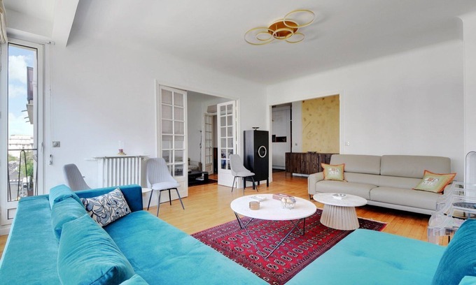Situated on the 4th floor with an elevator, this modern and tastefully decorated 93m² apartment is conveniently located near top attractions in Paris, such as Trocadéro Square and Jardins du Trocadéro.