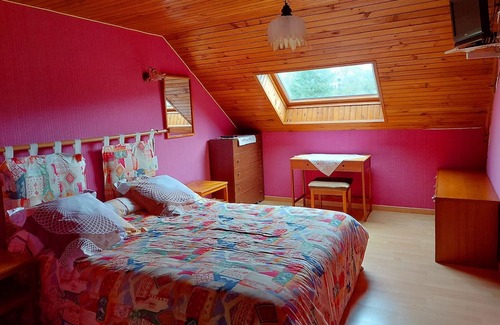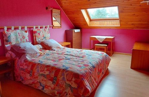 1.7km from Craon, a dynamic town in Mayenne, known for its horse racing, its 19th century castle (visits and weddings), the David guest rooms offer 3 rooms that can accommodate up to 11 or even 13 people, in short or longer stay. You will also appreciate the 2 fishing ponds of 4,300 and 2,400m², the flower garden decorated with beautiful palm trees. The property is on the edge of the Uzure, a river on which it is also possible to fish. You are on an active agricultural area. Depending on the rooms chosen and the number of your group, you can occupy one of the rooms on the 1st floor, the "Green Room" of 16m² with a 140*190 bed and 1 90*190 bed with its private bathroom - shower, sink and toilet, an office, or the "Pink Room" of 11.5m² composed of a 160*190 bed, possibility of using the 90*190 folding bed, private bathrooms. At your disposal, a dining area including a nice on-the-go kitchen area (crockery, microwave, kettle, sink and refrigerator). Washing machine available. If you want a longer stay, choose the "Long stay" suite composed on the ground floor of a 15m² bedroom with 1 140*190 bed and 1 90*190 bed, a 6m² bathroom with shower and sink as well as a separate toilet. A living room with fireplace lounge area and full equipped kitchen (cooking, cold, dishes) is available. TV in each room and wifi. Fishing enthusiasts, the two private ponds are stocked with carp (approx. 8kg), pike, roach. Fishing room: hot and cold water sink and refrigerator. The owners will know how to make your stay as pleasant as possible with their welcome, hearty breakfasts and all the advice for your outings. At David, everything is planned for a quiet and comfortable stay. At 800m, you can join the greenway; cycle path, which leads to Laval towards the North, or to La Rincerie, water sports center, wake-park, swin golf... There are numerous hiking trails (~60km) near Craon to discover a wooded and hilly countryside . On the 1st floor, this 11.5m² room has a 160*190 bed, with the possibility of a 90*190 folding bed. You have a private bathroom and toilet, accessible directly from the bedroom. Cupboard. Contact the owners a few days before your arrival to organize your welcome. Property managed by a professional. Unless stated, services such as cleaning, bed linen, towels etc. are not included in the price of this rental. If pets are allowed (information in the advertisement), charges may be applicable. Only equipment mentioned in this advertisement are present. Equipment not mentioned are not considered to be present.