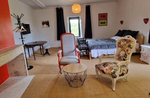 Fishing or cycling enthusiasts (the “la route bleue” (V50) cycle route is fifty meters from La Maison Forte) you can admire a 19th century washhouse completely restored with the help of French Heritage or listen the Angelus, or even tick off the hours to the sound of the bells of a pretty nearby church. The sleeping area consists of a large bed (160x200) with their bedside tables and you also have a private entrance with a coffee/tea area.