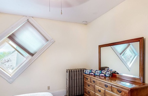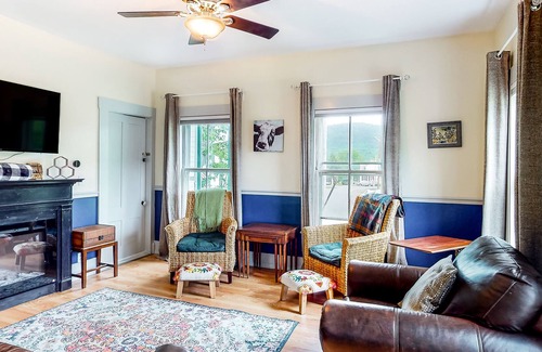This beautiful old-timer home enjoys a welcoming living room comfortably furnished to provide a fantastic spot to unwind as you stream your favorite series and movies on the smart TV. The electric fireplace will keep you nice and toasty during your stay, especially if you are visiting during the colder months. Stock up on groceries on your way here and surprise your loved ones with delicious homemade meals prepared in the well-appointed kitchen, which features a Kenmore country kitchen range with a modern electric stovetop and a dual built-in oven. Attached to the kitchen is a secluded office/rec area with a desk workspace, plenty of board games, a cozy reading nook, and another smart TV. When it comes to outdoor living, the home enjoys a front porch with comfy seating, a wood-burning firepit where you can gather to roast s'mores, and a gas grill that is perfect for summertime cookouts.