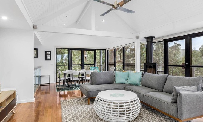 Perched along the ridge of Kennett River, the property overlooks the stunning Great Otway National Park, offering distant ocean views toward Wye River. Enjoy regular visits from koalas, king parrots, crimson rosellas, cockatoos, and kookaburras!