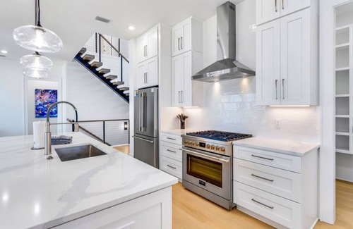 Culinary enthusiasts will delight in the gourmet kitchen, equipped with a gas stove, large pantry, and is well stocked for all your cooking needs. The kitchen seamlessly flows into the living and dining space, offering a seamless connection to the paradise beyond. With stainless appliances, quartz countertops, and a convenient half bathroom, this first level is designed for comfort and convenience. We offer a full-size laundry room on this level too, equipped with a brand-new washer and dryer.