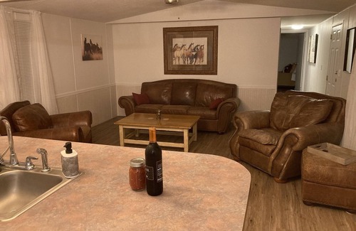 Beautiful, clean, convenient and fully fenced with all the comforts of home. Great for family getaways, fishermen, hunters and lake lovers. Plenty of parking for all your toys. Has 3 bedrooms (1 King / 1 Queen / 2 Twins in third bedroom and 2 twin cots with bedding can be placed in any room) Come relax, stay & play!!