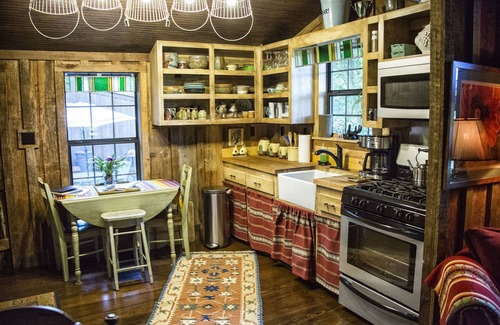 This is just the cutest little cabin that was the original homeplace for this property back in 1865. We both love LONESOME DOVE so we named this cabin for GUS. (We built a two bedroom "CLARA'S CABIN" at the other end of the property. Both are very private and have their own sense of a peaceful getaway.)