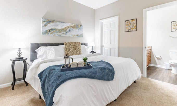 Be our guest at this beautiful 1 bedroom apartment w/ all new furnishings! Perfect for couples, business travelers, or medical travelers!