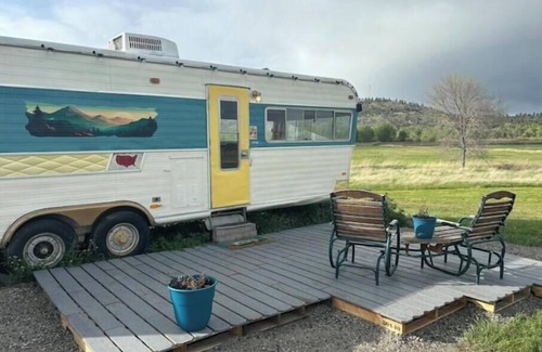 Free your mind in this luxurious upgraded 1970’s beauty! Spacious RV with room inside and out to stretch your legs and your soul. Situated across from the Yellowstone River on 40 acres in the historic town of Reed Point, you will enjoy basing here to explore Montana while having privacy away from the tourists' sites. The camper has been updated with Wi-Fi, modern appliances, foam mattress and full shower.