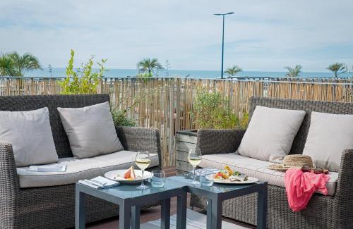 - La terrasse, jacuzzi et vue mer à 100m de la plage