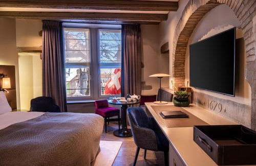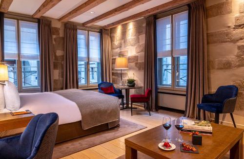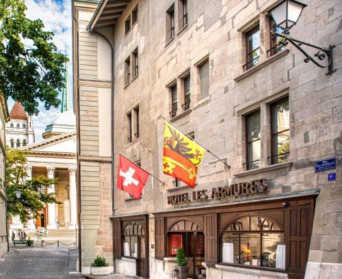 The unique Hôtel Les Armures hotel housed in a 17th-century building in the heart of Geneva's old town features a unique historic atmosphere, charming rooms and fine cuisine. Within a 10-minute walk you can reach the shopping district, the lake-front promenade and the main museums. The hotel offers you luxurious yet unpretentious accommodations and excellent dining. Guests will sleep within walls steeped in history beside the adjoining St. Pierre Cathedral. Guest rooms are all air-conditioned and lavishly furnished, feature marble bathrooms, thick bathrobes and the latest technology including free wireless internet access and satellite TVs. Café Hôtel Les Armures is a city landmark and Geneva's oldest coffee house, a popular spot among locals and a must-see for visitors. The restaurant serves classic French gourmet cuisine while in the cellar the Carnotzet offers cheese specialties including Raclette and Fondue. Hôtel Les Armures has been a magnet for foreign dignitaries wishing to discover the true soul of this international city. Hôtel Les Armures has welcomed such famous guests as presidents Bill Clinton, Jimmy Carter and John F. Kennedy.